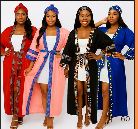 Add a vibrant touch of culture and sophistication to your look with this Women’s African Print Kimono. Crafted from soft, lightweight cotton fabric, this kimono features stunning traditional African patterns that blend heritage with modern fashion. Its open-front design, flowing sleeves, and relaxed fit make it the perfect layering piece for any occasion.
